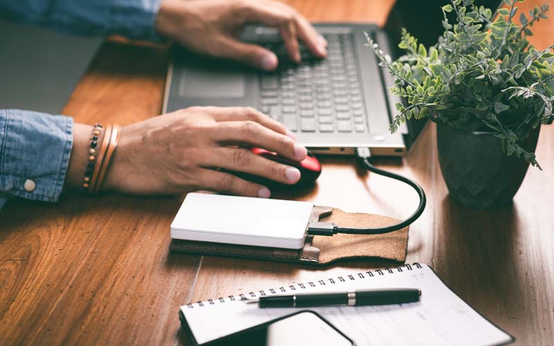 De backup op een externe harde schijf is vooral populair onder consumenten, omdat het een goedkope en laagdrempelige manier is. Voor organisaties met veel apparaten is de externe harde schijf echter omslachtig, omdat hij steeds fysiek moet worden aangesloten. Om brand- en inbraakrisico’s tegen te gaan, is het belangrijk om de backupschijf op een andere locatie te bewaren dan de apparaten waarvan een backup is gemaakt. Verder is een nadeel van de externe harde schijf dat virussen zich vanaf je computer naar de schijf kunnen kopiĆ«ren.