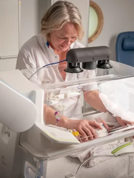 Zo ook met de BabyCam voor in ziekenhuizen. Via een beveiligde livestream kunnen ouders/verzorgers van te vroeg geboren baby’s 24 uur per dag zien hoe het kersverse familielid groeit en wordt verzorgd. Dit helpt bij het belangrijke hechtingsproces tussen ouders en kind.